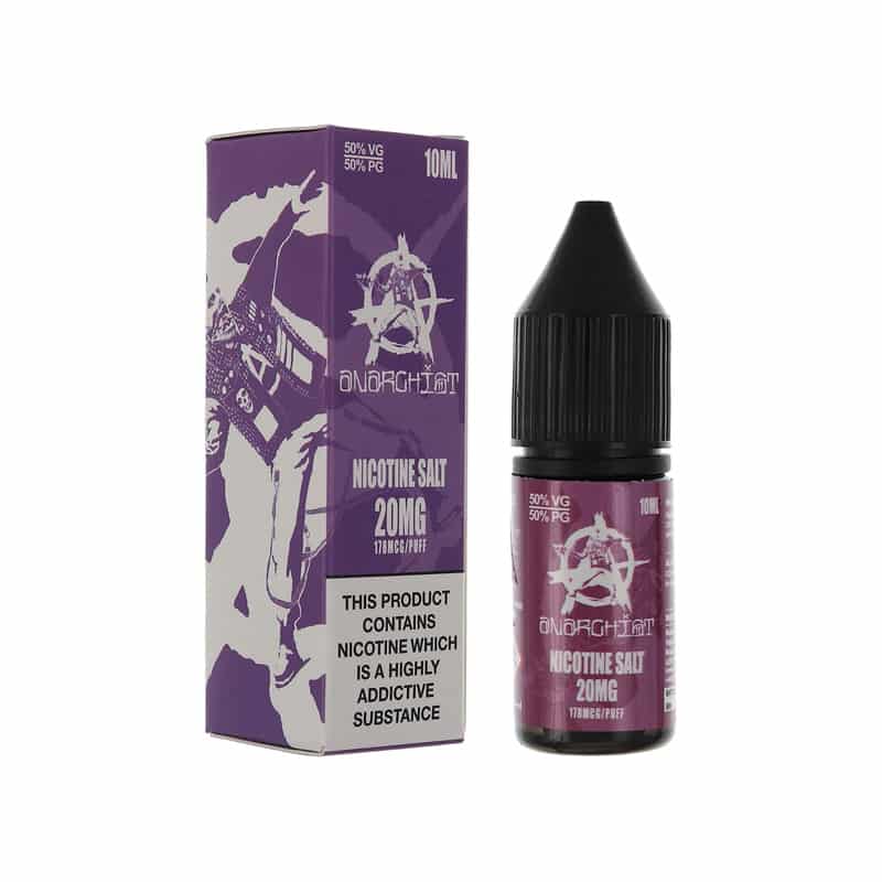 Purple by Anarchist Salts features a rich candied grape that has been blended with sweet bubblegum to create a sweet shop style vape!